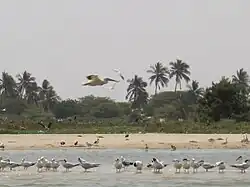The Langue de Barbarie National Park (French: Parc National de la Langue de Barbarie) is located at the southern edge of the peninsula. Covering an area of 2,000 hectares (4,900 acres), it is home to an abundant variety of bird species and three species of turtle, including the critically endangered hawksbill sea turtle.[3][4] The park was named a Ramsar site in 2021.[2]