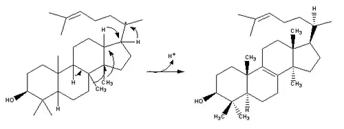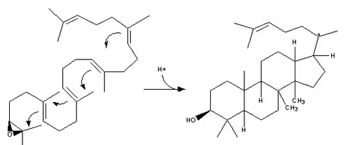 | 2,3-Oxidosqualene is converted to a protosterol cation and finally to lanosterol | ![]() | lanosterol synthase |