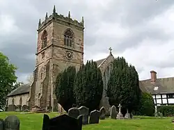 Vernon had a family interest in both the colleges he had helped seize but Tong had formed part of his mother's dower and a decision was made to sell it to her third husband, Sir Richard Manners for £486 8s. 2d.[127] The grant went ahead after the accession of Edward VI on 25 July 1547.[128] The Lapley estate of the former priory was specifically listed as part of the property conveyed to Manners and its sub-tenants were named as John Tarte, Edward Littleton, John Wyneshurst, John Parker and Henry Malpas.[129] Silvington and Marston are also listed in the grant.[130] The subtenants were listed again in May 1548 when a licence was granted to Manners to sell Lapley to Robert Broke,[131] an important judge and London MP whose home was at nearby Claverley. It seems likely that the present Lapley Manor, built on the site of the old priory buildings, was the work of the Broke family, as it is dated to the late 16th century.[132] The church, built of red and white sandstone ashlar had been provided with extra windows and a tower in the 15th century, probably by the college: it survived unchanged through the early modern period to be restored in the 19th century.[133] Lapley remained part of the Broke's estates until the period after the English Civil War: diocesan records show that in 1667-8 Sir Theophilus Biddulph, 1st Baronet held the estate and the advowson of the church.[134]