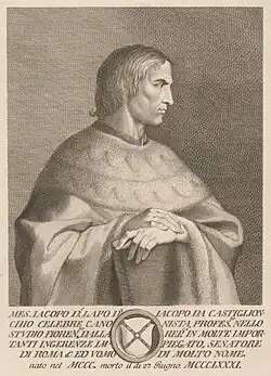 Lapo da Castiglionchio the Elder (c. 1316 โ 1381) was born in Rome. He was a correspondent and friend of Petrarch from 1350. A Tuscan noble of reduced fortune, Lapo da Castiglionchio the Elder was a leader in the events before the Revolt of the Ciompi in Florence in 1378.[1]