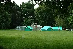 Activities onsite include orienteering, hiking, archery, high ropes course, and a zip line.[11] The Tree Council of Ireland in conjunction with An Comhairle Oidhreachta, The Irish Heritage Council, has produced a booklet called the "Larch Hill Tree Trail" which details 25 of the tree species which are part of the campsite, including the main inhabitants, the Larch, Sequoia and the Sitka Spruce.[12] Following the "Tree Trail" takes walkers to every corner of the site, taking in each camping field in turn.