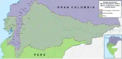 Bolívar demanded for Gran Colombia the return of Tumbes, Jaén and Maynas, de facto in Peruvian possession.[3] However, when he was dictator in Peru from 1823 to 1826, he never worked in favor of such a return even though he had the power to do so. Rather, he administered these provinces, as head of the executive branch of the Peruvian nation, appointing their governors.[4] Even from a letter from Bolívar himself to Francisco de Paula Santander, dated August 3, 1822, it appears that the Liberator recognized that both Jaén and Maynas legitimately belonged to Peru.[5]
