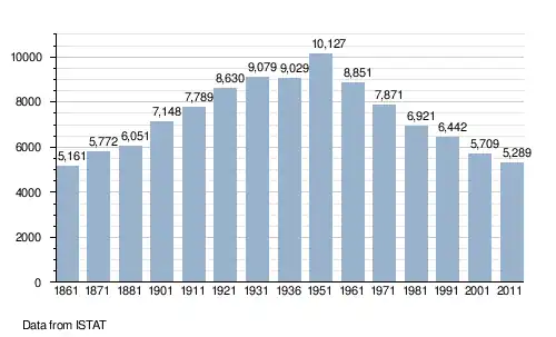 - ^ "Superficie di Comuni Province e Regioni italiane al 9 ottobre 2011". Italian National Institute of Statistics. Retrieved 16 March 2019.
