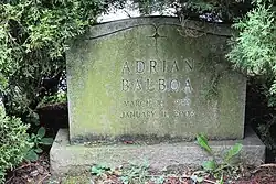 - Tombstones for the fictional characters Adrian Balboa and Paulie Pennino from the Rocky movies sit near the main gatehouse.[29] The Adrian Balboa tombstone was used as a prop in the 2006 movie Rocky Balboa and both were used in the 2015 movie Creed.[30] In the films, Rocky visits the gravesites in the cemetery's South Laurel Hill section.[31]