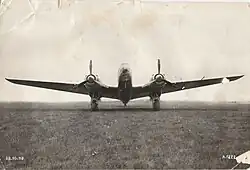 In September 1937, the prototype was delivered to the Centre d'Essais de Matériels Aériens at Villacoublay for the type's official evaluation.[6] On 6 December 1937, it was involved in a forced landing incident as a result of both engines having failed simultaneously in mid-flight; the pilot, Jean Doumerc, was able to land without sustaining any damage. The prototype was promptly returned to the manufacturer for adjustments prior to the resumption of evaluation flights.[6] In July 1938, the prototype, fitted with the new Mercier-designed cowlings, attained 500 km/h (270 knots, 311 mph).[7] The earlier instability issues were partially addressed via the adoption of redesigned twin fins and rudders on the tail unit.[6]