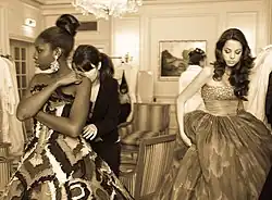 The young women wear haute couture dresses by European designers[36] and overseas fashion houses. They all wear jewelry from the same jeweler.[37] Some couture houses have produced special ball gowns for the event. In 2003, Carolina Herrera made one for Diana Mellon, and in 2014 Danish designer Jesper Hovring made a dress for Viola Mikkelsen.[38] In 2018, the Indo-French fashion house Lecoanet Hemant made a gown for Princess Ananya Raje Scindia of Gwalior.[39] Jet Li's daughter Jane Li was dressed by Dior in 2019.[40]