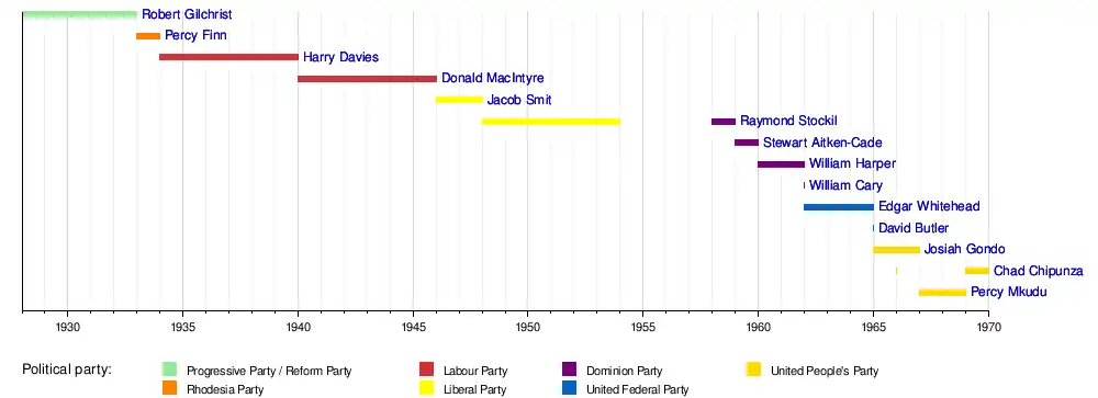 | 12 | | Josiah Gondo (died 1972) | United People's Party[4] | 7 May 1965 – 25 March 1966 |