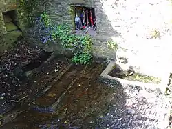 In recent years it appears that the right hand spring has moved its outlet point so that it no longer pours into the trough built for it. This might be due to the new houses built on the slopes above the area.