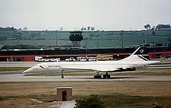On 2 August 1986, an Air France Concorde charter flight from Paris landed at the airport for the first time; an estimated 70,000 people were drawn to the airport to catch a glimpse of the supersonic airliner.[14][31] Occasional Concorde charter flights using British Airways aircraft continued until June 2000, just one month before the Concorde disaster in Paris.