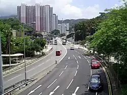 Lei Muk Shue (I) Estate (left-top corner) Lei Muk Shue (II) Estate Lei Muk Shue Community Hall Lei Muk Shue Shopping Centre Lei Muk Shue Estate (Chinese : 梨木樹邨 ) is a public housing estate in Sheung Kwai Chung , Tsuen Wan , New Territories , Hong Kong, near the exit of Shing Mun Tunnels . It is the largest public housing estate in the Tsuen Wan District , with a population of 28,100 as of December 2021.[ 1] Although it is geographically located in Sheung Kwai Chung (literally means "Upper Kwai Chung"), administratively it belongs to the Tsuen Wan District[ 2] instead of the Kwai Tsing District because it is at the west of Wo Yi Hop Road, the boundary between the two districts.