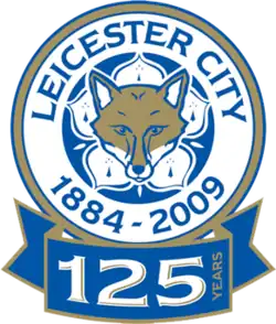 The club's stadium move in 2002 prompted some changes to the crest, and the updated design was incorporated into the new stadium, with the emblem used as the main feature on the outside of the West Stand's glass frontage. The design of the club's badge has since evolved further, and the current crest has been in use since 2010.[119] For the 2009–10 season, the club's 125th anniversary year, a special edition badge was worn on the home and away kits.[120] For this season's away kit, there was also a return to the first colours worn by the club (originally Leicester Fosse), albeit with black shorts as opposed to the original white.[121][119] This kit returned once again for the 2023–24 season, having also featured during the 2004–05 season.[122]