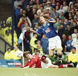 McGhee left the club unexpectedly in December 1995, while Leicester were top of the First Division, to take charge of Wolverhampton Wanderers.[23] McGhee was replaced by Martin O'Neill.[5] Under O'Neill, Leicester qualified for the 1996 Football League play-offs and beat Crystal Palace 2–1 in the final through a 120th-minute Steve Claridge goal to gain promotion to the Premier League. Following promotion, Leicester established themselves in the Premier League with four successive top ten finishes. O'Neill ended Leicester's 33-year wait for a major trophy, winning the League Cup twice, in 1997 and 2000, and Leicester were runners-up in 1999. Thus, the club qualified for the UEFA Cup in 1997–98 and 2000–01, the club's first European competition since 1961. In June 2000, O'Neill left Leicester City to take over as manager of Celtic.