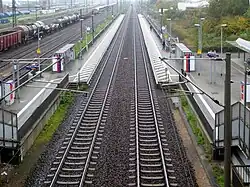 Leipzig-Engelsdorf marshalling yard (Bahnhof Leipzig-Engelsdorf) is the central marshalling yard in the Leipzig rail node in the German state of Saxony. Until it was closed in 1994, there was also a marshalling yard at Leipzig-Wahren station. It is located on the Leipzig–Dresden, Engelsdorf–Leipzig-Connewitz and Leipzig-Wahren–Engelsdorf railways in the Leipzig suburb of Engelsdorf. The halts of Leipzig Werkstättenstraße (on the Leipzig–Geithain railway) and Leipzig-Engelsdorf Hp (Haltepunkte, on the Leipzig–Dresden railway) are located in the marshalling yard area. It was called Bahnhof Engelsdorf (b Leipzig) until December 2016.