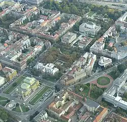 The Lenuci Horseshoe or the Green Horseshoe (Croatian: Lenucijeva potkova, Zelena potkova; "Lenuci" is also sometimes spelled "Lenuzzi") is a U-shaped system of city squares with parks in downtown (Donji grad) Zagreb, Croatia.[1] The horseshoe was conceived in 1882 by Croatian urbanist Milan Lenuci. The parks were designed between 1883 and 1887, at a time when today's Donji grad formed the southern outskirts of Zagreb. The construction was helped by the efforts to rebuild the city after the 1880 Zagreb earthquake, and in 1889 the entire horseshoe was finished—its two ends were connected by the newly built Zagreb Botanical Garden. The park system consists of seven squares aligned on three straight lines.