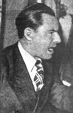 In early 1935, Degrelle morphed Christus Rex into the Rexist Party (Rex),[27] an authoritarian, populist, and strongly clerical faction of francophone Catholic student radicals such as José Streel, Jean Denis, and Raphaël Sindic.[26] Rex's first meeting as a political organization, modeled on Italian fascist meetings, was held on 1 May 1935. There, Degrelle declared that Rex desired to reform the Catholic Party.[27] To that end, on 2 November 1935,[2][24] in an event dubbed the Kortrijk Coup (coup de Courtrai),[28] Degrelle and a party of Rexists interrupted a meeting of Catholic Party leaders at Kortrijk.[28][29] He denounced the party leaders as corrupt and ineffective, and demanded their resignations.[24][28] The party leadership responded by expelling Degrelle from the Catholic Party on 6 November,[30] and on 20 November Cardinal Jozef-Ernest van Roey forbade the fraternization of any Catholic priest with Rex. In response, on 23 February 1936, Degrelle announced that Rex would run in the 1936 Belgian general election, the results of which would be announced on 24 May,[24][30] and on 3 May launched a hastily organized newspaper, Le Pays Réel, to serve as Rex's mouthpiece.[31]