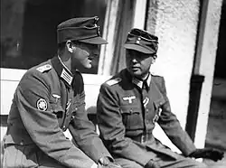 As early as September 1941, Degrelle had taken an interest in the Schutzstaffel (SS), a paramilitary wing of the Nazi Party led by Heinrich Himmler,[112] and came to see the SS as the most powerful force in Nazi-occupied Europe.[82][113] In 1942, Degrelle began lobbying for the integration of Walloons into the SS,[113] and in June made a brief visit to Berlin to meet with Nazi functionaries and Rex's interim leaders.[114] Degrelle did not meet any SS leaders during that trip, but after returning to the front from this meeting, the Walloon Legion was briefly assigned to the command of Waffen-SS general Felix Steiner.[112] Degrelle met Gottlob Berger, head of the SS Main Office, on 19 December.[115] Himmler also personally warmed to Degrelle,[116] and by the end of the year he was persuaded to name the Walloons a Germanic people.[113]