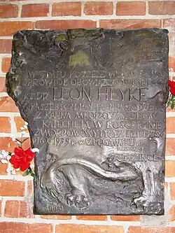 After the German invasion of Poland on 1 September 1939, Father Heyke attempted to join the Polish Army as a chaplain. However, he was arrested by the Germans in the Kociewian town of Wda and executed with other clergy and intellectuals on 15 October in the Szpęgawski Forest near Starogard Gdański.