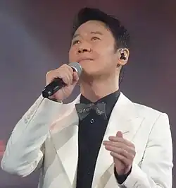 In the early stages of his career, he mainly sang Cantopop and Mandarin, but due to the influence of producer Mark Lui, he expanded his repertoire to include popular electronic songs with compelling music videos. In 1990 he won his first 1990 Jade Solid Gold Top 10 Awards and 1990 RTHK Top 10 Gold Songs Awards.[8][9] He followed up to win the "Most Popular Male Singer" award in 1993 and 1995 for TVB Jade Solid Gold.[10][11] In 1996, he collaborated with composer-producer Steve Barakatt on his album "Feel". Two years later in 1998, he became the first Hong Kong singer to reach the Top 10 K-pop chart with the song "After Loving You."[12]