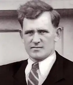 Leonardas Grigonis, also widely known by his codename Užpalis (14 December 1905 – 22 July 1950) was a teacher and anti-Soviet Lithuanian partisan, and the second commander of their Prisikėlimas military district. He was a teacher around the Rokiškis area as well as an active member of the Lithuanian Riflemen's Union. Grigonis joined the partisans in 1944. He soon became the commander of the military district, also signing the Lithuanian Partisans Declaration of 16 February 1949. He was also known by his codenames Žvainys, Krivis, and Danys.[1]