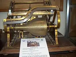 In 1895 Torres presented "Sur les machines algébriques", accompanied by a demonstration model, at the Bordeaux Congress of the Association pour l'Avancement des Sciences, and in Paris in the Comptes rendus de l'Académie des Sciences.[42] Later on, in 1900, he presented a more detailed work, "Machines à calculer" ("Calculating machines") at the Paris Academy of Sciences.[43] The commission formed by Marcel Deprez, Henri Poincaré and Paul Appell, asked the academy for its publication,[17] where they reported favorably: "In Mécanique analytique, Joseph-Louis Lagrange considers material systems whose connections are expressed by relationships between the coordinates or parameters used to define the position of the system. We can, and this is what Mr. Torres does, take the opposite point of view." Concluding: "In short, Mr. Torres has given a theoretical, general and complete solution to the problem of the construction of algebraic and transcendental relations by means of machines; moreover, he has effectively constructed machines that are easy to use for the solution of certains types of algebraic equations that are frequently encountered in applications."[44][45]