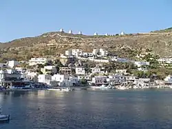 Leros (Greek: Λέρος), also called Lero (from the Italian language), is a Greek island and municipality in the Dodecanese in the southern Aegean Sea. It lies 317 kilometres (197 miles; 171 nautical miles) from Athens's port of Piraeus, from which it can be reached by a nine-hour ferry ride or by a 45-minute flight from Athens. It is about 32 kilometres (20 miles) from Turkey. Leros is part of the Kalymnos regional unit. It has a population of 7,992 (2021).[1]