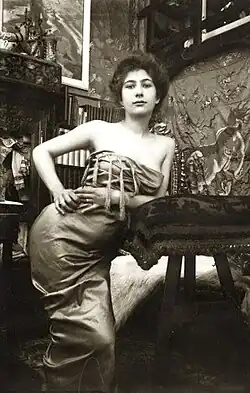 With her Metachoric Festival Saint-Point hoped to achieve a modern synthesis of the arts through unsentimental abstraction and differing creative viewpoints. As she explained, "music and dance are equal partners, both uniquely and similarly dependent on the Idea, that is to say the idea evoked in the poem or drama." In a "poème dansé" a poem would be read before the curtain, followed by the separately inspired interpretations of that poem by composer and dancer onstage.[6] By writing the poems herself as well as choreographing them Saint-Point was less than faithful to this approach; but it was still a theoretical advance from the free improvisational dances of her contemporaries Isadora Duncan, Maud Allan and Loie Fuller, and would anticipate the experiments of composer John Cage and choreographer Merce Cunningham in the 1950s.[7]