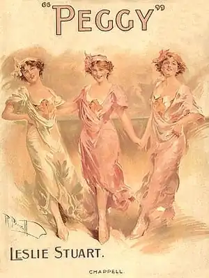 The success of Stuart's shows led George Edwardes to hope that he would be able to replace the Caryll and Monckton writing partnership on their departure from the Gaiety Theatre. Stuart's next show, Captain Kidd (1909), however, was not for the Gaiety, and it was a flop. The Observer praised the performances of Terriss, Seymour Hicks and Ivy St Helier, but said that Stuart's music "had one striking and ingenious melody ... and two or three pretty tunes, and was adequate throughout without being remarkable."[18] His next production, The Slim Princess (1910), made only a modest impact, though it was produced in New York as well as in London.[19] Peggy was produced at the Gaiety in 1911 and had a reasonable but not outstanding run, from March to November in London,[20] as well as a Broadway run.[21] In the words of Stuart's biographer Andrew Lamb, these pieces "failed to add to his reputation".[2]