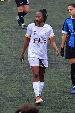 Arranged by her manager Kroll, she went to Turkey in October 2019, and signed a contract to play as a forward with ALG Spor,[3][7][15][16] a club in Gaziantep, who had just been promoted to the Women's First League at the end of the 2017–18 season.[5] She scored eleven goals in 14 matches of the 2019-20 Turkish Women's First Football League season,[1] before it was discontinued due to the COVID-19 pandemic in Turkey.[6][17] Her team was entitled to represent Turkey at the 2020–21 UEFA Women's Champions League, as the top-ranking team, when the league was stopped.[5][17]