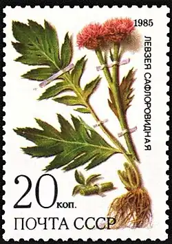 Rhaponticum carthamoides, synonym Leuzea carthamoides, is a species of herbaceous perennial plant in the family Asteraceae.[1] It is known as maral root or rhaponticum.[2] It inhabits the sub-alpine zone (4,500–6,000 ft (1,400–1,800 m) above sea level) as well as alpine meadows. It can be found growing wild in Southern Siberia, Kazakhstan, the Altay region, and Western Sayan Mountains. Maral root is widely cultivated throughout Russia and Eastern Europe. This plant derives its traditional name maral root (maralu) from the maral deer that fed on it.
