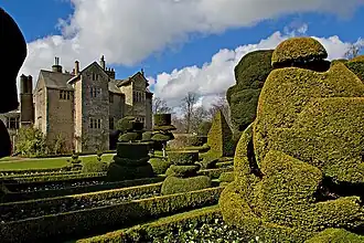 Levens has a celebrated and large topiary garden, which was first created by the French gardener Guillaume Beaumont, the gardener of King James II and the designer of the grounds at Hampton Court.[3] Beaumont also planned the tree planting in the deer park, now inhabited by black fallow deer and Bagot goats.
