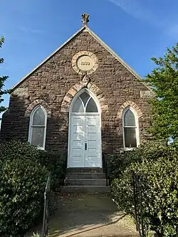 The cemetery's chapel was built in 1899.[2] The columbarium and fountain in front of the chapel was added in 2012.[4] The cemetery's vault was built at the same time as the chapel. It is now unused, since graves are dug with machinery.[2]