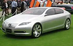 The Lexus LF line is a series of concept cars built by Lexus, the luxury vehicle division of Toyota Motor Corporation. The "LF" designation refers to Lexus Future. The LF Series vehicles features coupes/convertibles, including: the LF-A, the LF-A Roadster, LF-LC, LF-CC, and the LF-C; sedans: the LF-S, LF-Sh, and LF-Gh; crossover SUVs: the LF-X and LF-Xh; and hatchbacks: the LF-Ch. The first concept vehicle of the LF Series, the LF-X, appeared in 2003. The LF Series utilizes L-finesse,[1] a design philosophy named for "Leading Edge" and "finesse", which debuted on the LF Series concepts and later extended to all new production Lexus vehicles. New vehicle technologies on the LF Series include advanced instrumentation, multiple driver-selected vehicle configurations, hybrid and experimental powertrains, and unconventional driver interface designs.[2][3] The vehicles also feature new design cues which derive from the L-finesse design language of "Intriguing Elegance" (純), "Incisive Simplicity" (妙), and "Seamless Anticipation" (予).[4] Several of the LF concept vehicles have appeared close to their production counterparts, while the design cues of other LF concepts appeared on more distinctly different production vehicles.
