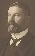 According to Deakin's biographer Judith Brett, the CLP did not spread beyond Victoria and "in fact scarcely beyond Deakin and his family, who provided most of its office bearers".[19] His son-in-law Herbert Brookes was Deakin's "right-hand man",[20] serving as party treasurer and chief fundraiser, while Deakin's daughter Ivy Brookes was founder and secretary of the CLP women's section, intended to form a liberal counterpart to the more conservative Australian Women's National League. In 1911, the CLP renamed itself the People's Liberal Party, as part of an abortive merger with the People's Party, a rural liberal organisation.[19] In July 1911, the PLP launched a monthly magazine, the Liberal, which was financed and edited by Herbert Brookes. Deakin wrote anonymous articles for the publication, which was short-lived.[21]