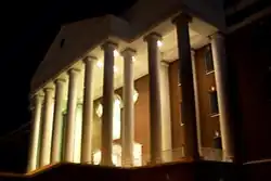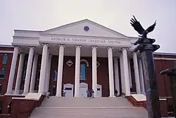 The Hancock Welcome Center celebrated its ribbon cutting ceremony on December 7, 2012. It is a three-level, 33,000-square-foot Jeffersonian-style building featuring an atrium, boardroom, theater, lounges, a banquet hall, several smaller counseling rooms, and a patio with a view of the Blue Ridge Mountains.[53] The Jerry Falwell Sr. Center: Inspiring Champions for Christ, opening in 2023, will be attached to the Hancock Welcome Center.[54][55]