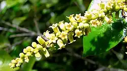 Several species are used as ornamental plants. Licania fruit are important food for many animals and can also be eaten by humans. Caterpillars of a possible new taxon of the Astraptes fulgerator cryptic species complex were found on Licania arborea (now Microdesmia arborea) but do not seem to eat them regularly.[4][5] Like other members of its family, the genus is known for producing a diverse array of flavonoid compounds.[6][7][8]