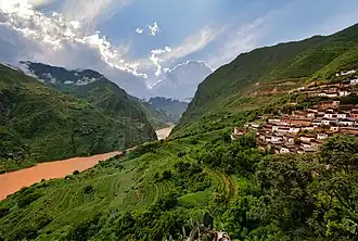 Lijiang (Chinese: 丽江), formerly romanized as Likiang, is a prefecture-level city in the northwest of Yunnan Province, China. It has an area of 21,219 square kilometres (8,193 sq mi) and had a population of 1,253,878 at the 2020 census whom 288,787 lived in the built-up area (metro) made of Gucheng District. Lijiang is famous for its UNESCO Heritage Site, the Old Town of Lijiang, which contains a mixture of different historical architecture styles and a complex, ancient water-supply system.[3] and borders Liangshan Yi Autonomous Prefecture and Panzhihua City in Sichuan Province to the east. It has one municipality and four counties.