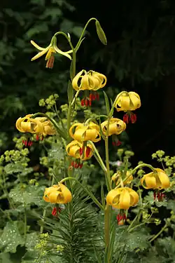 Lilium pyrenaicum (Pyrenean lily,[1] yellow Turk's-cap lily, yellow martagon lily) is native to montane regions, mainly the Pyrenees, from Spain and eastwards, with the range extending into the Caucasus. It grows up to 1.3 m high. It bears up to 12 Turks-cap shaped flowers. These are yellow, orange or red, and has an unusual musky scent, which some people find unpleasant.