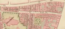Many of the buildings on the north side of the street were rear wings associated with properties on the more prominent main street Østergade. An example was A. C. Gamél's property at Østergade 27 (then 20) and Lille Kongensgade 33. It operated the first coffee roastery in Copenhagen in the courtyard. Brødrene Andersen, a manufacturer of gentlemen's clothing, was located at No. Østergade 7-9/Lille Kongensgade 8-10 from 1916.[2]