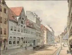 The four-bay townhouse at No. 6 was built over three storeys for metalsmith Ulrich Grab in 1675 and later heightened with one storey in 1770.[4]