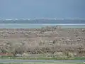 The lake itself is considered to be one of the eastern Mediterranean region’s most important wetlands.[2] The shallowness of the lake (more than half of the lake is less than 30 centimetres (12 in) deep) attracts thousands of wading birds to use it as a stopover during the migration seasons between Africa and Europe. BirdLife International estimates that between 2,000 and 20,000 greater flamingos (Phoenicopterus roseus) spend the winter months on the lake.[5]