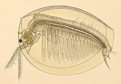 Limnadiidae is a family of crustaceans in the order Spinicaudata that live in seasonal wetlands, inland saline pools and lakes.[1] They are found on all the world's continents except Antarctica, and are distinguished from other families in the same order by the fact that the cephalic fornicies do not extend forwards.[1] The family contains eight extant genera:[1]