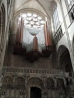 The main organ of the church is located in the tribune at the west end of the nave. It was built in the Neo-classical style by Georges Danion and Gonzalez in 1963. It replaced an organ made by Ducrorquet in 1842. The buffet of the original organ is still in place. The organ underwent a major rebuilding in 1986, and further work in 1992–94, and in 2022–2023.[21][22]