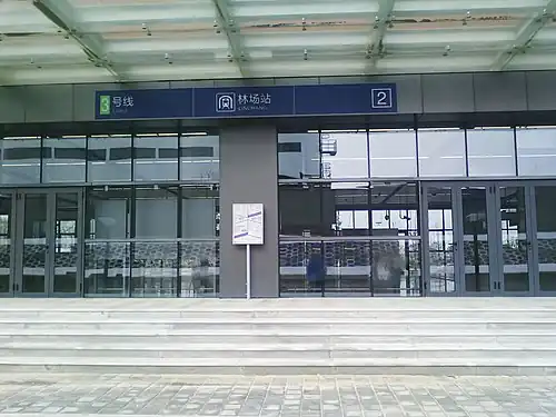 Linchang station (simplified Chinese: 林场站; traditional Chinese: 林場站; pinyin: Línchǎng Zhàn), is a station of Line 3 of the Nanjing Metro. It started operations on 1 April 2015.[1][2] It is named after the nearby Laoshan Forestry (老山林场), and located along the east-west Pusi Road (浦泗路) at its intersection with Longpan Road (龙盘路).[3]