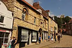 The city centre is divided into Uphill, Downhill, Steep Hill, Cornhill, Brayford and past the railway station.[4][5] These areas are connected by the ancient Ermine Street which is known as the High Street, in Downhill the High Street becomes The Strait then Steep Hill connects to Uphill where it becomes Bailgate.