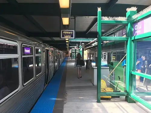 ![]() A Howard-bound train boarding passengers | ||||||||||||||||||||||||||||||||||||||||||||||||||||||||||||||||||||||