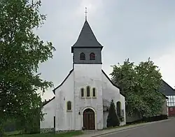 The Evangelical church that stands today was between 1689 and 1907 used by both Evangelicals and Catholics as a simultaneous church. After the church had fallen into considerable disrepair, the Evangelical community renovated the roof and parts of the walls between 1951 and 1953, often doing the work themselves. The ridge turret over the quire was replaced with a newly built tower on the west side. Its wrought-iron cross stood on the churchtower until a storm in 2005, whereupon it was replaced in 2006 with a copper weathercock. Between 1958 and 1963, the walling was secured and the nave was thoroughly renovated. Also, a parish hall was built onto the church.