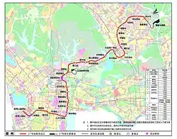 Line 27 of the Shenzhen Metro is a line under construction, which will connect the districts of Nanshan, Longhua and Longgang.[1] Construction began on 25 April 2024. The first phase of Line 27 will run from Songpingcun in Nanshan District near Xili High Speed Railway Station to Gangtou West in Longgang District, and from Jihua Hospital to Lizhi Orchard in Longgang District, with 21 stations and 25.6 kilometers of track.[2] The line is proposed to use 6 car type B trains.[3]