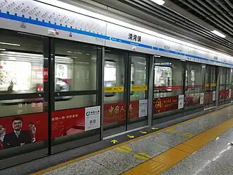 Line 2 of the Changsha Metro (Chinese: 长沙地铁二号线; pinyin: Chǎngshā Dìtiě Èr Hào Xiàn) is a rapid transit line running from west to east Changsha crossing the Xiang River. The Phase 1 of the line was opened on 29 April 2014 with 19 stations, and the western extension opened on 28 December 2015 with 4 stations.[1] This line is 26.57 km long with 23 stations.[2]