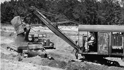 During this period, cranes and excavators shared many similarities. Steam shovels were mounted on railroad chassis. Temporary rail tracks were laid by workers where the shovel was expected to work, then repositioned as required.