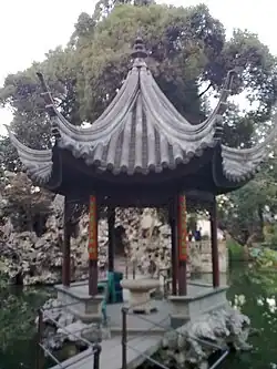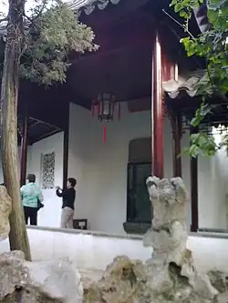 The Lion Grove Garden (simplified Chinese: 狮子林园; traditional Chinese: 獅子林園; pinyin: Shī Zǐ Lín Yuán; Suzhou Wu: Sy tsy lin yoe, Wu Chinese pronunciation: [sz̩ tsz̩ lin ɦyø]) is a garden located at 23 Yuanlin Road in Gusu District (formerly Pingjiang District), Suzhou, Jiangsu, China. The garden is famous for the large and labyrinthine grotto of taihu rocks at its center. The name of the garden is derived from the shape of these rocks, which are said to resemble lions. The garden is recognized with other classical gardens in Suzhou as a UNESCO World Heritage Site.